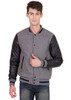 BLACK LEATHER SLEEVES & GREY WOOL BODY VARSITY JACKET