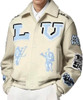 With its classic shirt-style collar, striped ribbed cuffs, and button-front closure, this jacket strikes the perfect balance between vintage varsity style and modern luxury. The cream color palette enhances its versatility, making it an effortless pairing with both streetwear staples and upscale casual looks.