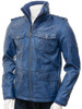 Men Blue Leather Biker Jacket
