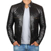 Men's Black Cafe Racer Motorcycle Leather Jacket
