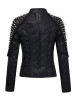 This is a stylish and edgy black leather jacket designed for women who love punk style. The jacket is made from real leather, ensuring durability and longevity. The jacket features a zipper closure, lapel collar, open hem cuffs, and two side waist slant zipper pockets for added functionality. The inner lining is made of soft Viscose fabric, which will provide comfort and warmth. The black color gives it a versatile and timeless look. The unique feature of this jacket is the studded style, which gives it a punk look, it is perfect for anyone looking to make a statement with their fashion choices. It's a great choice for anyone looking for a fashionable and functional piece to their wardrobe with a unique edge.