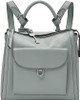 Women's Leather Mini Backpack Purse Handbag is a real leather backpack with a zipper closure and polyester lining. It has 1 back slide pocket, 1 back zipper pocket, 1 front flap pocket with magnetic snap and interior with 1 slide pocket and 1 zipper pocket. It is compatible with iPad Mini and has the measurements of 10"L x 4"W x 9.25"H with 1 top handle and 2 adjustable & detachable backpack.